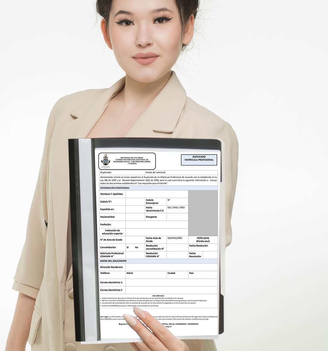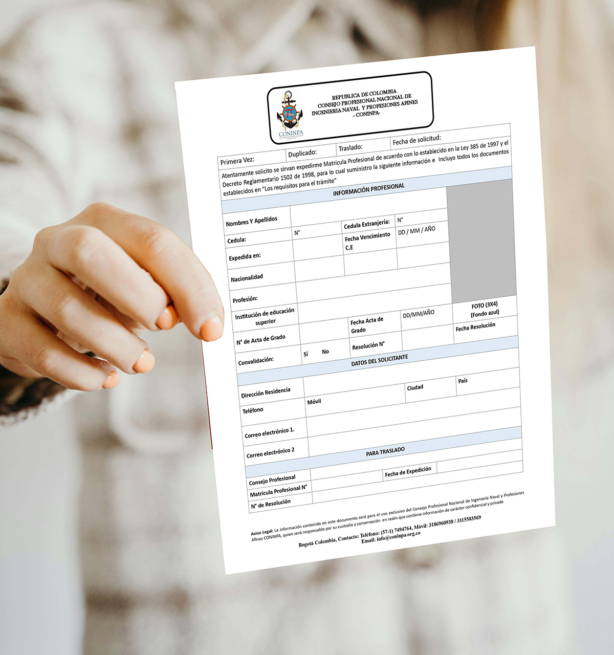 Antes de iniciar su trámite ante el CONINPA por favor tenga en cuenta que los artículos 18 y 19 del Decreto 2106 de 2019, “Por el cual se dictan normas para simplificar, suprimir y reformar trámites, procesos y procedimientos innecesarios existentes en la administración pública” por tanto, en cumplimiento de lo antes mencionado, el CONINPA expide la Matrícula Profesional de ingeniero Naval o profesional a fin, Certificado de Inscripción Profesional y Licencia temporal Especial de manera virtual, eliminando el plástico y su impresión.